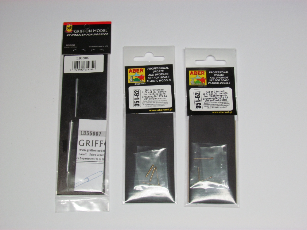A Tamiya\Italeri 1/35 kit. It comes with a great colour booklet, full of close up photographs. This is normally the kind of thing you have to see if the likes of Osprey publish. Generally I am fussy when it comes to barrels and tracks – I almost always seek a metal replacement for the plastic parts. Obviously tracks are not relevant in this case. But I got the Aber Browning .30 cal barrels and Griffon Model M6 37mm gun barrel.