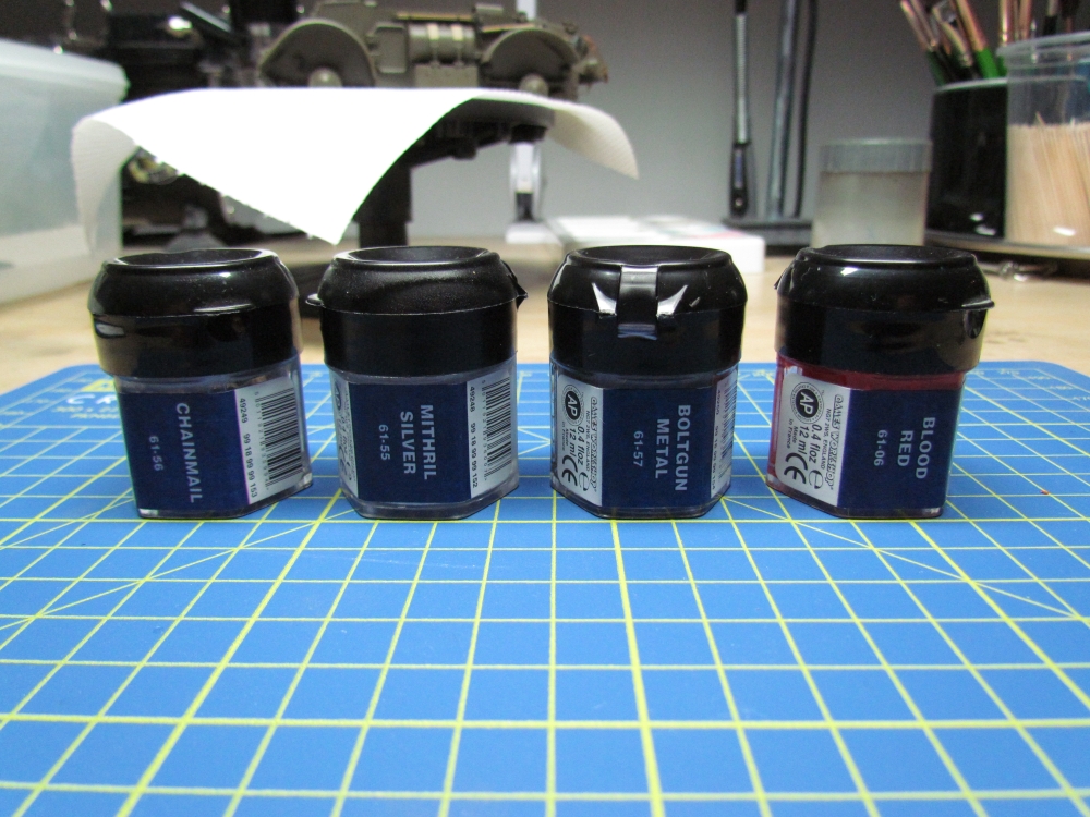 I used Vallejo Model Air Olive Drab (71043), which is reckoned to be a fair approximation of US Olive Drab, as a base coat. For practical reasons I had this to hand, rather than mixing up some variant of the British colour. Additionally, I thought that maybe these vehicles, originating in the US, would have that colour. At least one other person thinks so!