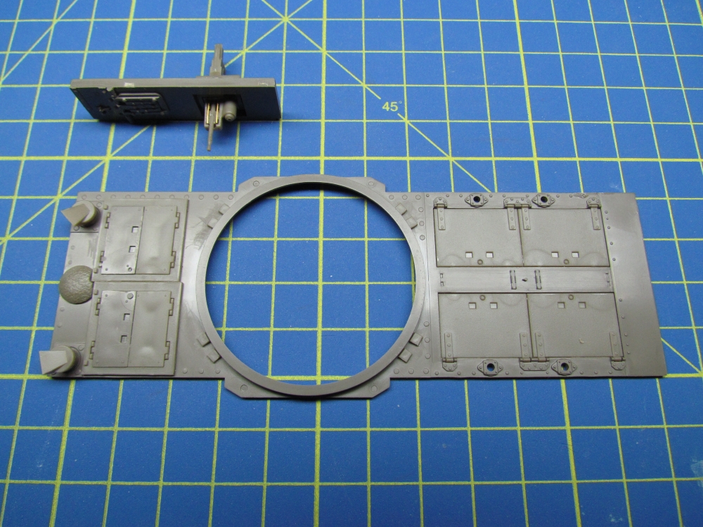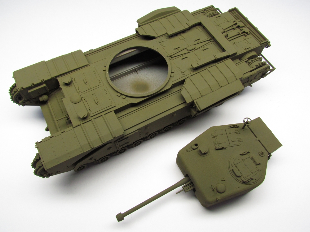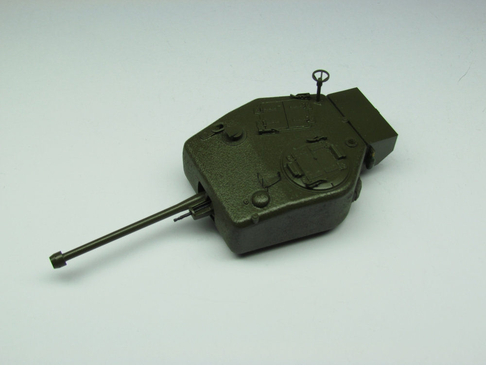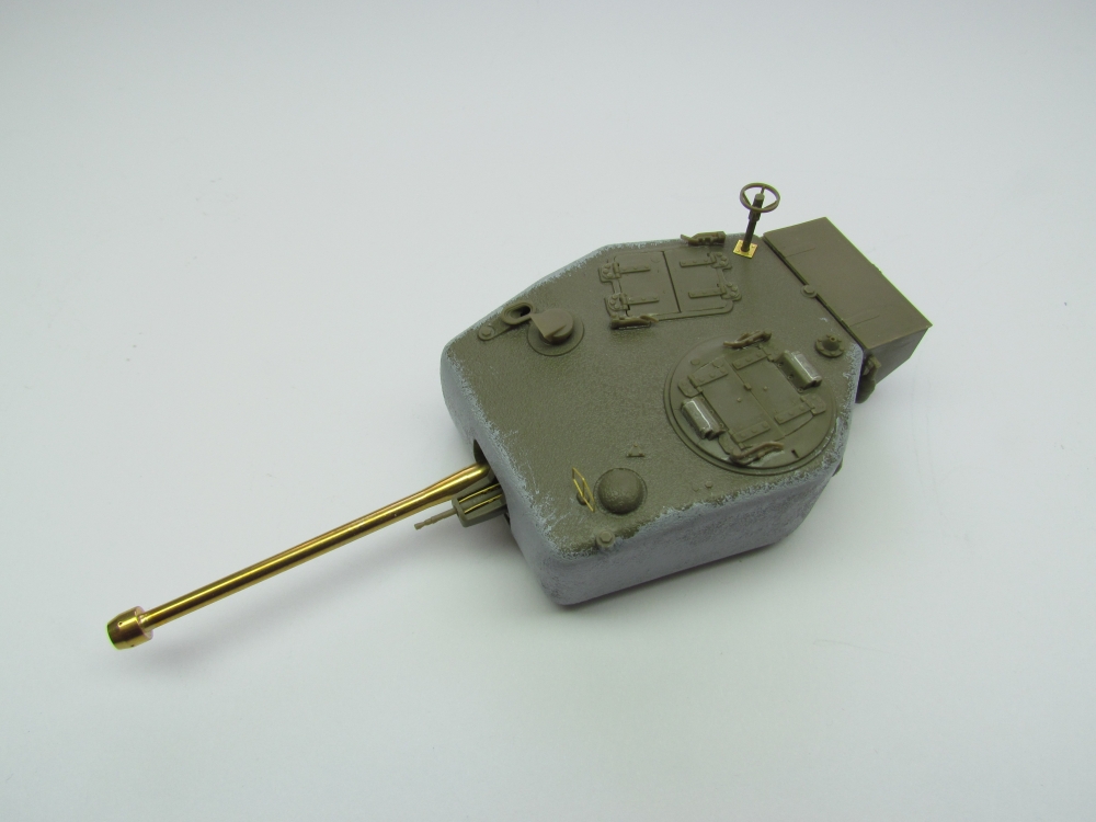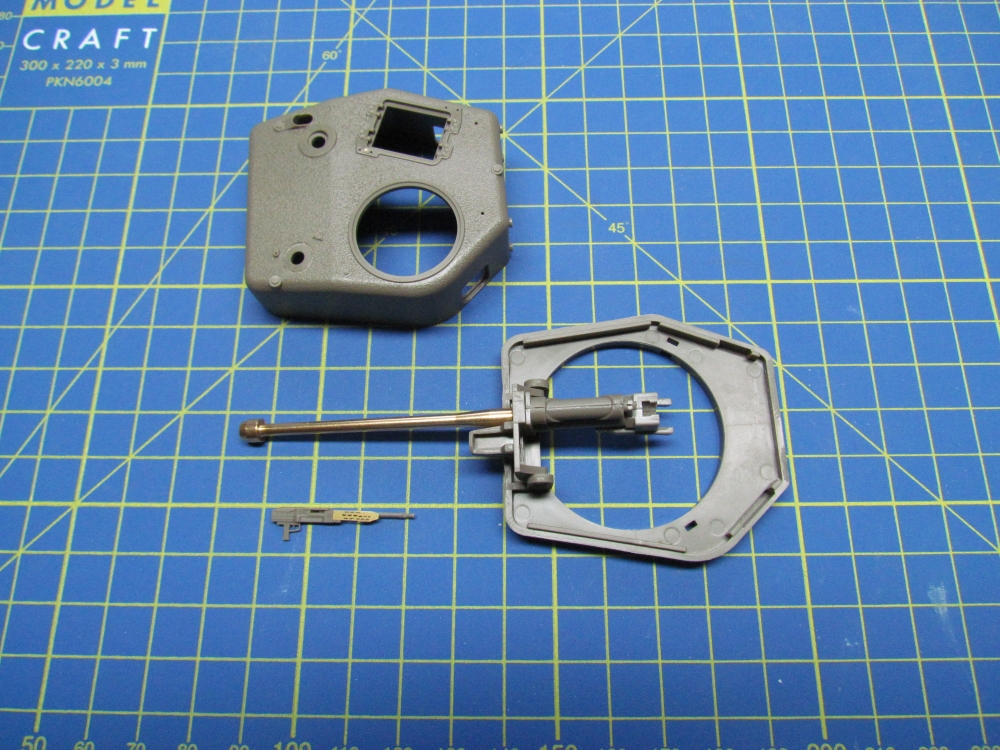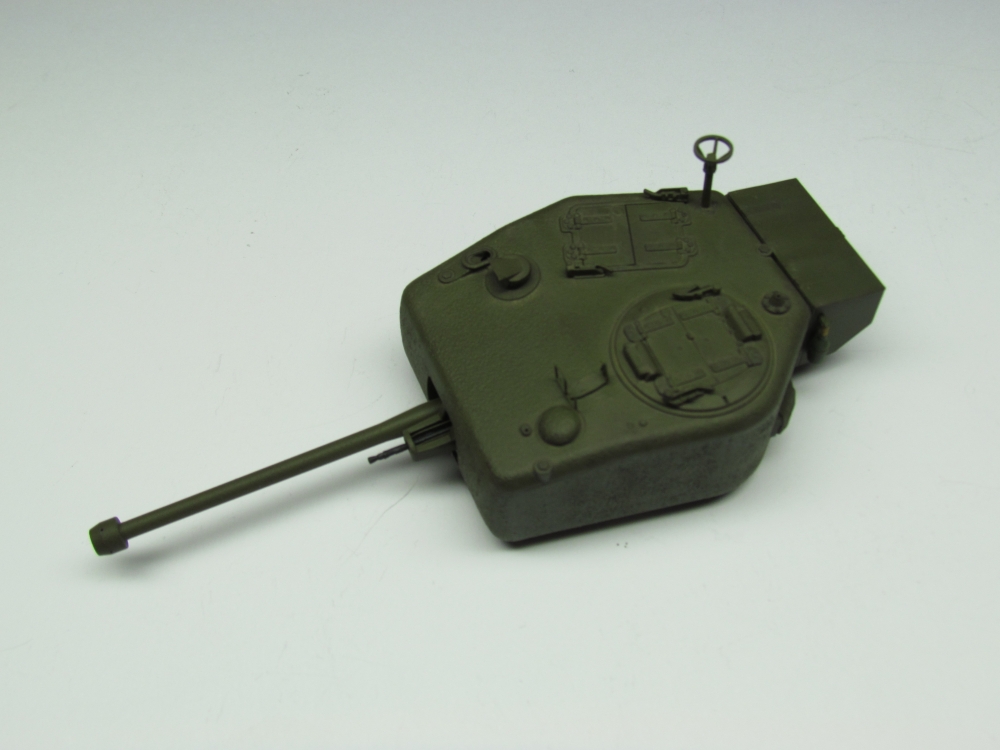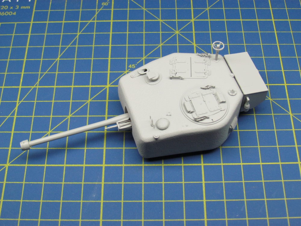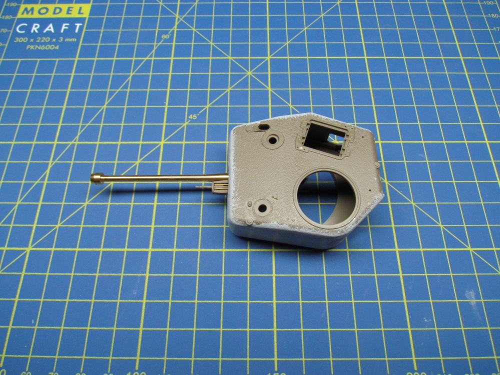 The turret started in two sections which had to be joined and the seam filled in. Once done, I used Mr.Surfacer 1000 to restore the cast texture. The remaining pieces were added with no trouble.