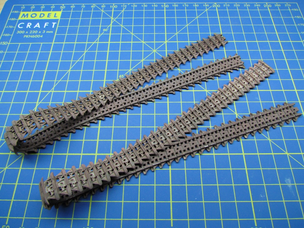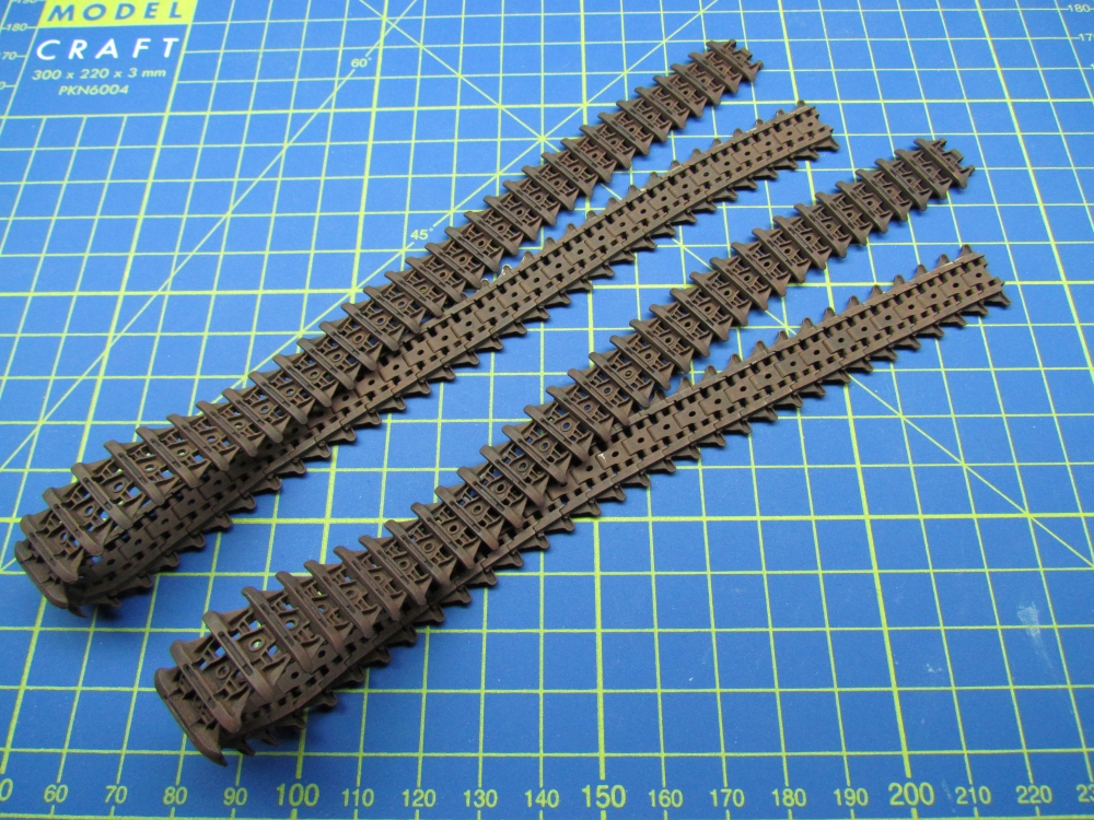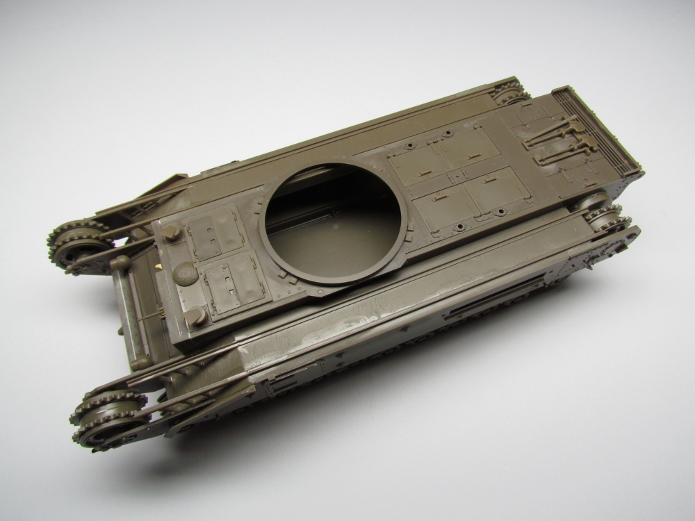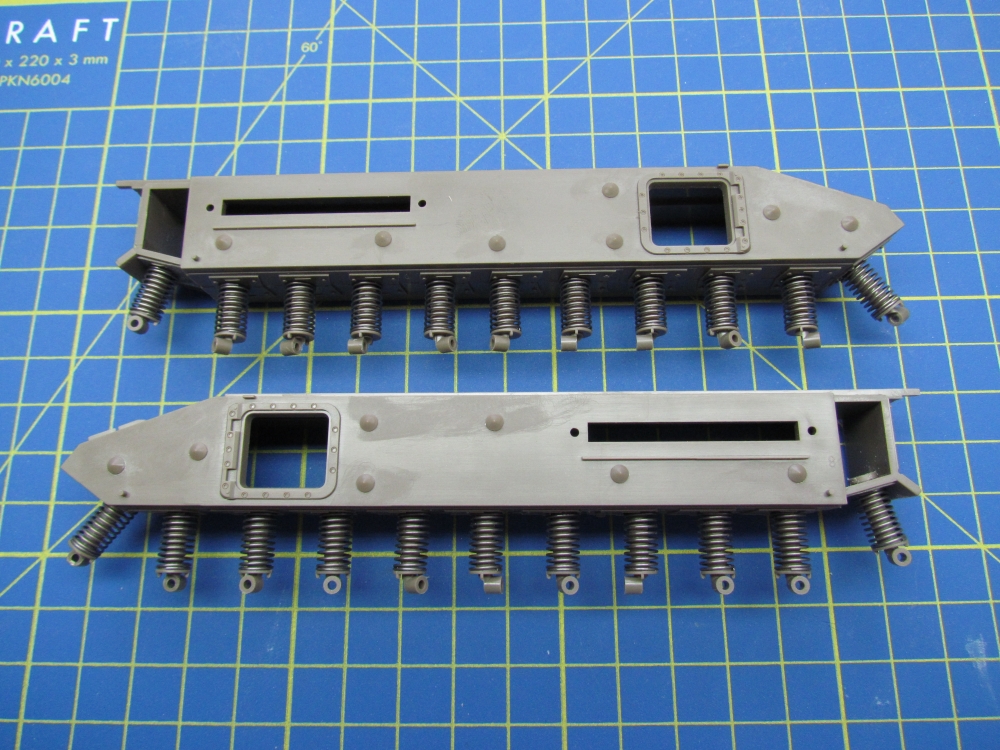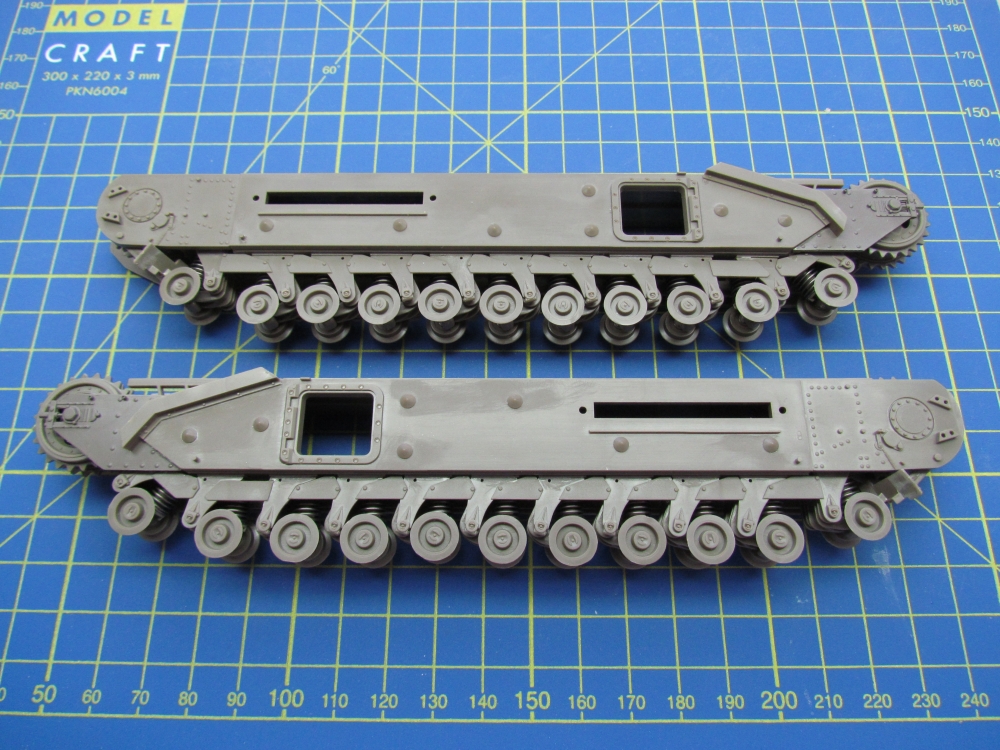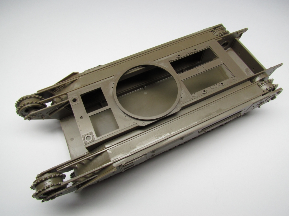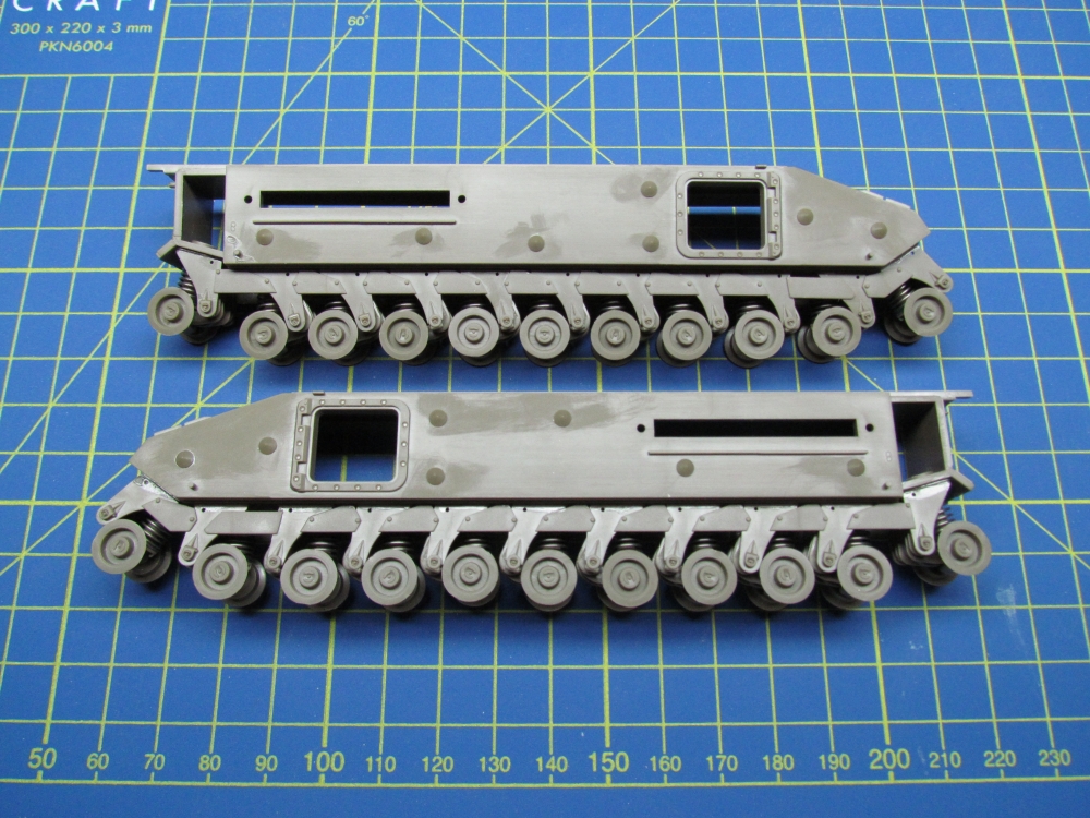 This was not a quick build. The hull is comprehensively broken down into many parts, with a complex arrangement for the wheels and suspension. But it all fits together nicely. Far more detail on these steps can be found here.