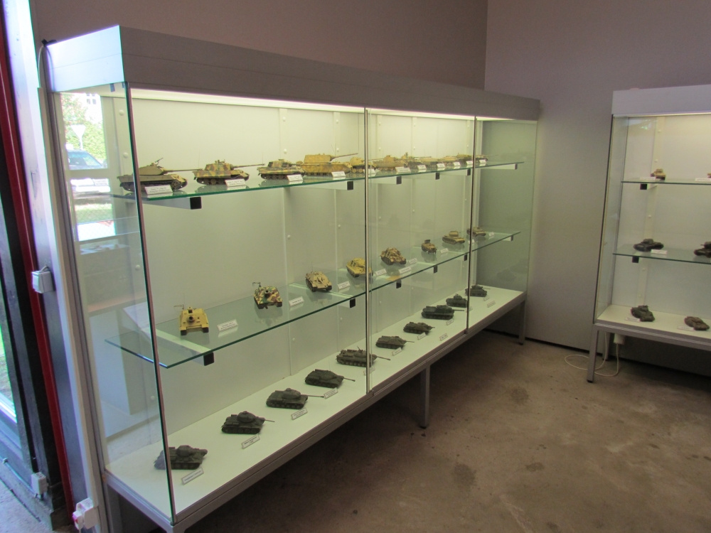 During my recent visit to the German Tank Museum in Munster I was impressed, naturally enough, by their vast collection of vehicles, but also by their scale models. I think that many of their tanks were reproduced in miniature form too. Actually, what really struck me about them was the way they were presented – professional display cabinets with glass shelves and plenty of light. They appeared to be dust free too!