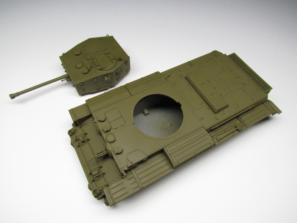 - Mig Productions “Oil and Grease Stain Mixture” P410 was added to certain parts of the side hull, running gear and the under turret area.
