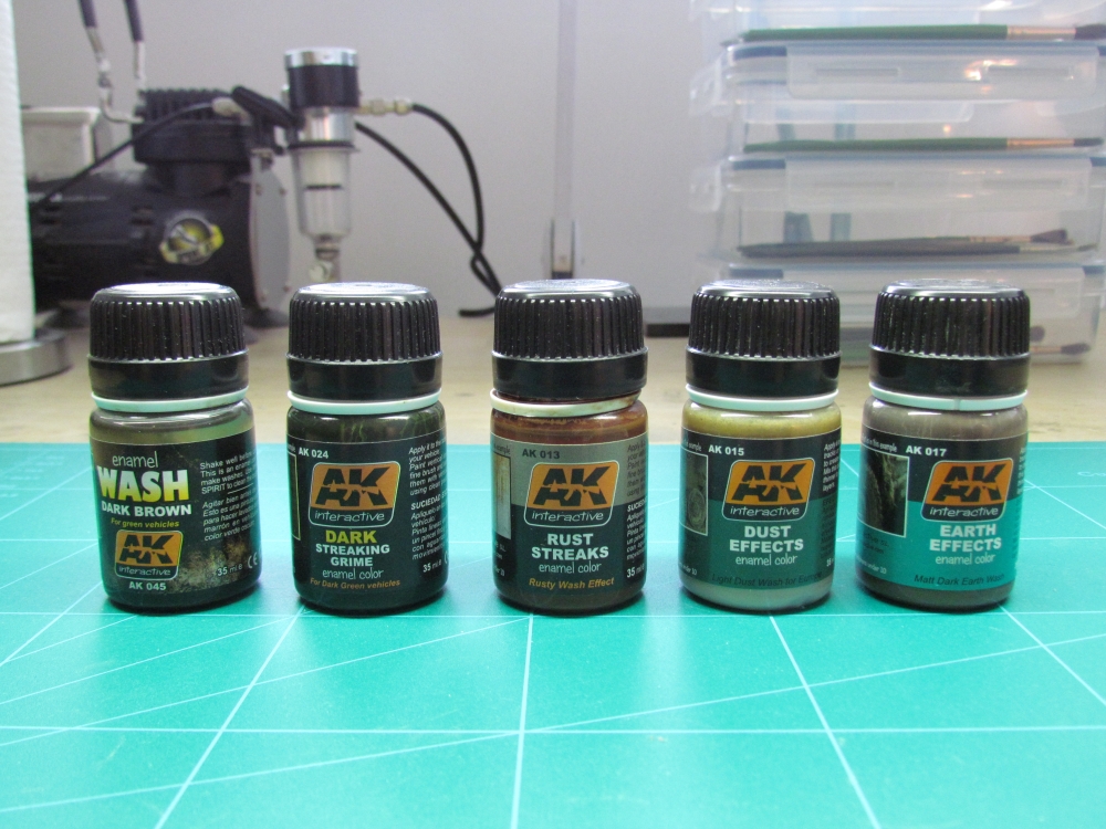 - Wash with AK Interactive “Dark Wash For Green Vehicles” AK 045. General wash and pin wash, followed with white spirit clean up.