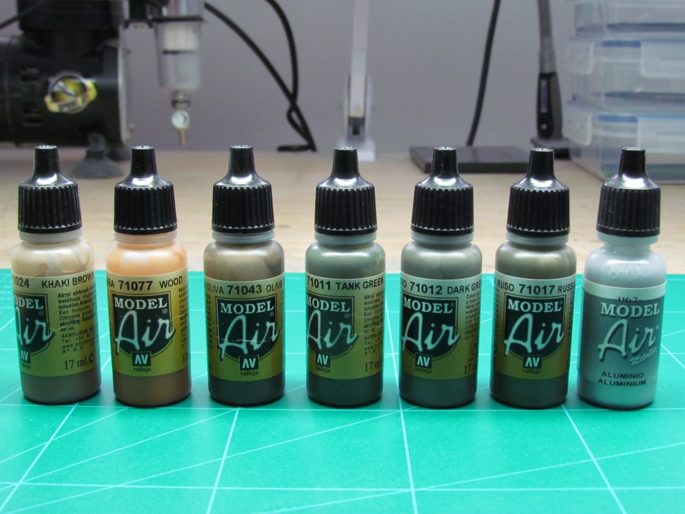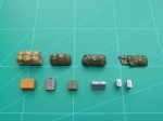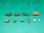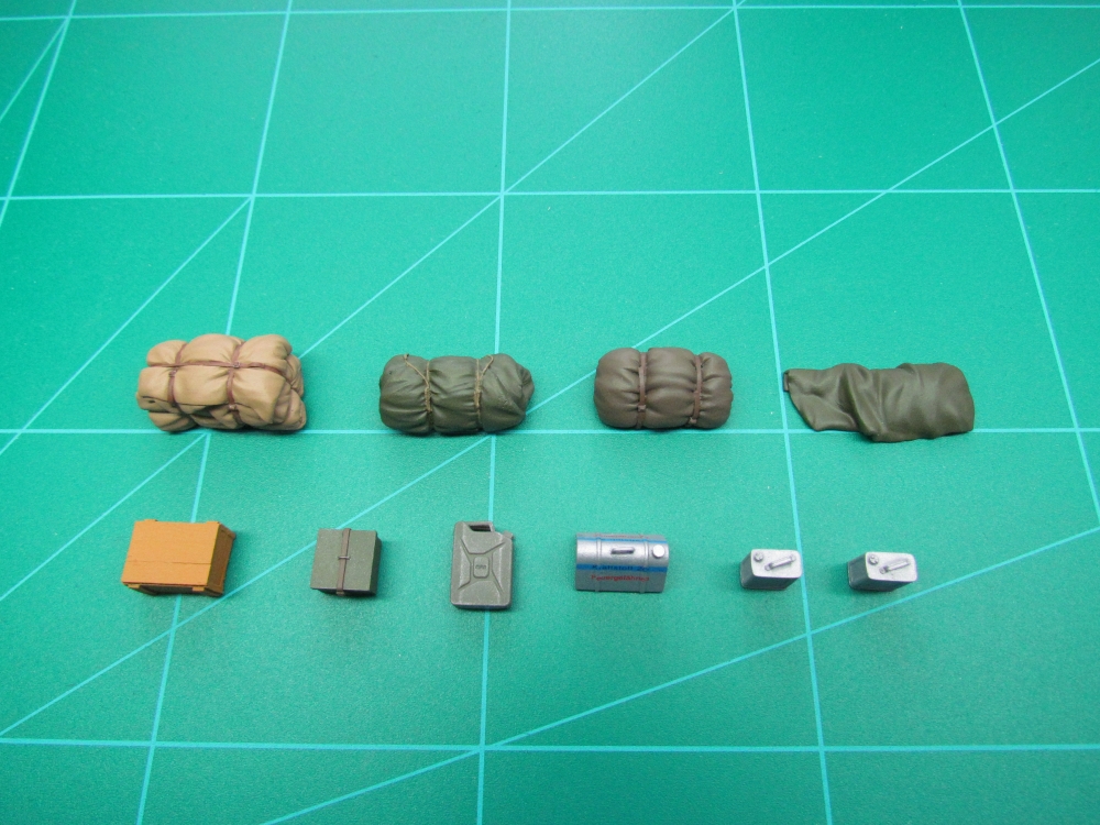 I delved into my spares box for various bits of stowage, including a “liberated” German fuel can appropriated for a new Allied use! The items were painted and weathered with various of the products shown below.