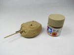- Spraying of tracks, rubber tyres and decals with 10% Tamiya XF-57 “Buff” in Tamiya X-20A thinner to tone them down slightly and provide the first appearance of dust.