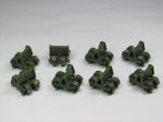 Doing this model for a second time I realised that much of the detail on the wheel bogies will not be seen once the skirts are attached and thus were omitted. For the track construction I glued them together with the help of a balsa wood jig. For the curved sections I bent them around the idler wheel and sprocket until the glue set. There was no need to assemble the top track run. I left off the track to allow ease of painting for it and the wheels.