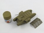 Base coat: Tank – A mixture of 90% Tamiya XF-49 “Khaki” and 10% Tamiya X-22 Clear in Tamiya X-20A thinner (2:1 paint mixture to thinner). Steering tail – A mixture of 90% Tamiya XF-63 “German Grey” and 10% Tamiya X-22 Clear in Tamiya X-20A thinner (2:1 paint mixture to thinner).