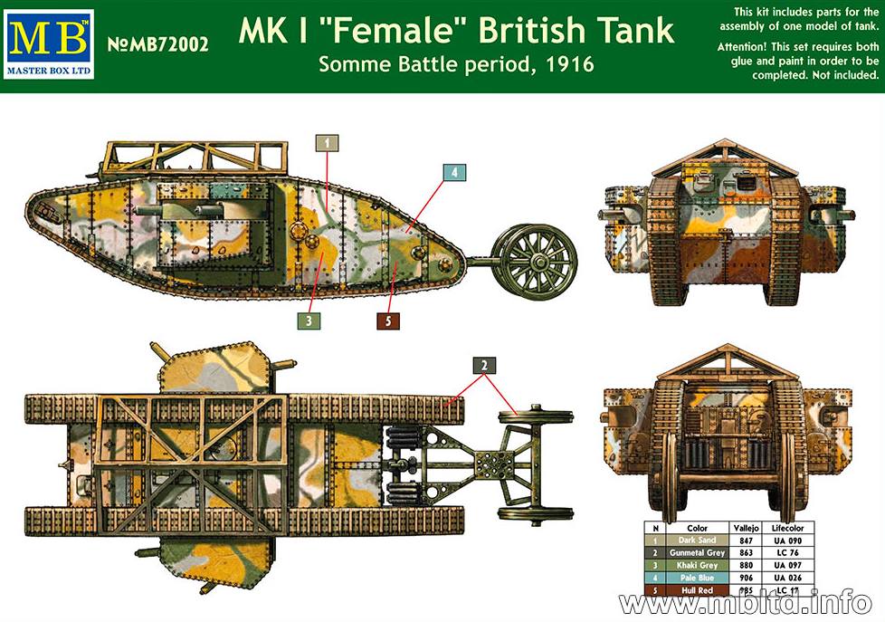 The artwork shows a complicated four colour scheme (presumably the type mentioned here). I freely admit to finding these types of schemes – to the extent that I have tried them – difficult! It doesn’t help that the suggested colours do not appear to be the same as the colours in the image. So, I decided to wimp out for a model of this scale and following the quote in the Wikipedia reference (“In late 1916, the Solomon scheme was abandoned and tanks were painted with a single shade of dark brown.“) I went with the below colours.