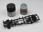 Base coat (chassis): A mixture of 90% Tamiya acrylics (XF-1 “Flat Black”) and 10% Tamiya X 22 Clear in Tamiya X-20A thinner (2:1 paint mixture to thinner).