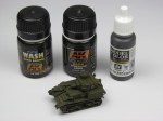 - Pin wash of entire vehicle with AK Interactive “Dark Brown wash for green vehicles” (AK045).