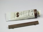 - The wooden part of the unditching beam was treated with Winsor and Newton “Burnt Umber” oil paint, which was then mostly wiped off, to stain the wood and accentuate the grain. Various AK Interactive washes and streaking effects were applied to the metal part.