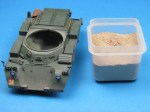 - A slurry of a mix of “medium” colour pigments was flicked from a brush onto the underside, front hull, rear hull and parts of the hull sides. The same mixture was applied by brush to the wheels, allowed to dry and the excess removed with the end of my finger.
