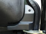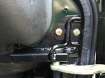 But, first I thought I would experiment with some minor paint repair. So, after scrubbing away any rust debris I applied Kurust to the rust in this particular part of the bulkhead. Then, I sprayed successively Hycote “High Build Grey Primer”, Land Rover “Epsom Green” spray paint and Land Rover “Clear Lacquer”, leaving each one 24 hours to dry. Not much I could do about the surface damage to the metal due to the rusting but at least it had a better paint finish afterwards. Ironically, installing the entire check strap slider and cover masked all of this work.