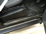 I thought that these stainless steel door “threshes” – from a company called YRM – would be a decent addition to my Defender. As can be seen in the first image I previously had a mixture of unpainted metal, floor mat and seat box covering in that area. So, removal of the existing bolts (rusted as expected), an underlay of duct tape (pretty useful stuff in a Land Rover this vintage!) and installation of the strips was easy enough for us to accomplish. Looks a lot neater now.