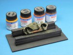 - Streaks of AK Interactive “Dark Streaking Grime” (AK024) and AMMO “Streaking Grime” (A.MIG-1203) were applied to the vertical and sloping sides and after a while blended with a flat brush dampened with enamel thinner.