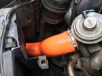 Our garage suggested that the engine could do with new silicone hoses for the intercooler\turbo system. The existing ones had got “collapsible” over the preceding years, leading to slight power loss. Fitting the new ones (turbo to intercooler pipe, intercooler pipe to intercooler and intercooler to inlet manifold) and the accompanying clips was easy – before and after pictures above. They look good too!