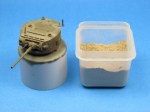 - A 3:2 mixture of Tamiya Acrylic XF-57 “Buff” and Tamiya Acrylic XF-52 “Flat Earth” in water (10% paint mixture in thinner) was prepared and drawn in thin vertical lines repeatedly down the vertical sides of turret multiple times, to attempt to simulate dust washed down the sides by rain.