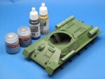 Base coats: For this one, I thought I would try the Mr.Hobby Russian Green modulation set. In all cases the paint was sprayed as a 1:2 mixture in Mr.Color leveling thinner.