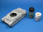 - Tracks: Tamiya “Dark Iron” (XF-84) in Mr.Color Leveling Thinner (1:2 ratio of paint mixture to thinner)