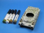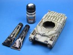 - Oil and grease stains were simulated on parts of the hull and running gear by using dilute mixtures of Abteilung 502 “Engine Grease” and “Bitume” in enamel thinner.