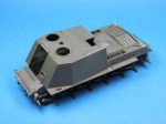 - As I had removed quite a bit of the support for the back of the vehicle I felt that the engine deck needed bracing up with wood blocks. Once I had the upper and lower hull joined and the back plate installed, I reckoned the latter sat just a little low, probably because it was missing the back fenders to lock it in place. You would have to look quite closely at it to see that and it is something which I can live with for the sake of trying something different with this build. Any obvious gaps or parts where I cut a little too much away were made good with Plastruct plastic sheet and rod.