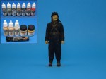 I thought I needed some figures in the model cabinet, to provide a sense of scale for the tanks. For the Soviet vehicles, I used the “Soviet Tank Crew (1939-1942)” by ICM. I have not used the officer figure yet, as I am not so keen on how he is posed. The two tank men were painted using the paints shown, a combination of airbrushing, brush painting, dry brushing and oil wash. I don’t pretend to be any kind of figure painter, so haven’t attempted to overly detail the faces, for example – more a distinction between the high points and the shadow areas. They are in the cabinet now, although there are plenty of empty spaces for as yet unmade vehicles.