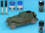 - A dilute mixture of Winsor & Newton “Raw Umber” in enamel thinners was flicked onto parts of the vehicle to represent subtle stains. A few fuel stains were represented using Abteilung 502 “Bitume” (ABT004) and Humbrol “Gloss Cote” in enamel thinners.