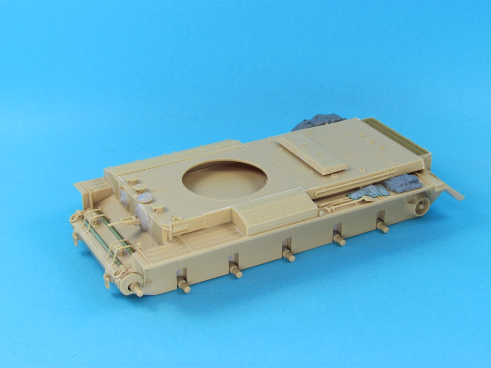 The build was very nice in general. I found the Besa machine gun mantlet (part E29) to be oddly ill fitting, requiring quite a lot of plastic to be carved from the underside in order for it to fit flush to the hull. The tracks are Fruilmodel (ATL-43), 123 links per side and linked together with 0.4mm brass rod.