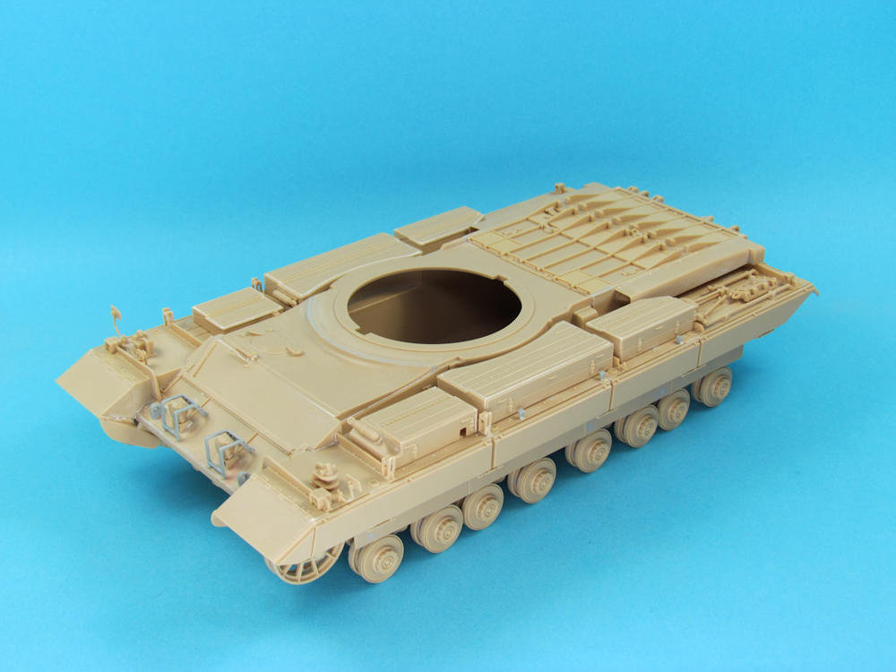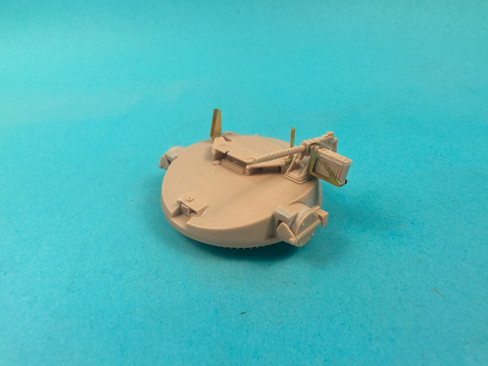 The kits is mostly decent but some of the locating holes for parts were inadequate or non-existent, so there was a degree of estimation involved, using photographs. Due to the kit obviously sharing parts with other Conqueror kits of this manufacturer, unused holes had to be filled in – the instructions make no mention of them. In one or two places I used suitable replacement parts from my spares collection. I used a metal barrel from Aber (#35L191). This made the turret topple forward so I added a bunch of metal balls at the back to counterbalance it. The gun mantlet cover was put together by scraps of rubber and filler, as none was supplied – it should be really, as I have not seen a photo of the real vehicle without it. Finally, I assembled the Friulmodel tracks (#ATL-172) using 0.5mm diameter brass rod – 100 links per side.