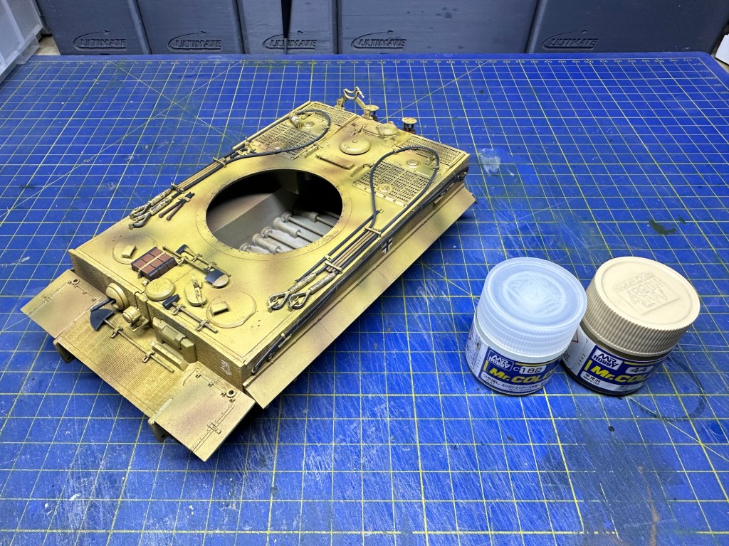 - Following this a 10% mixture of Mr.Color “Tan” (44) in Mr.Color Leveling Thinner was sprayed over the entire model, to tie all the colours together and present an impression of dust.