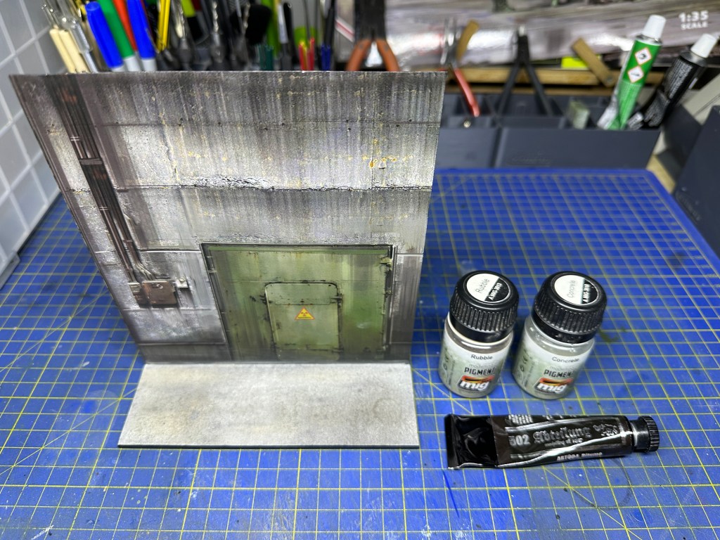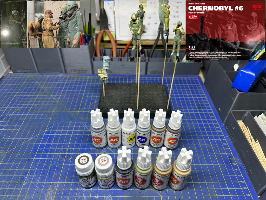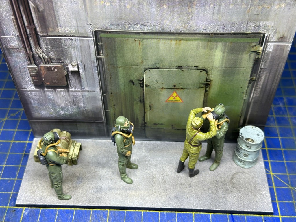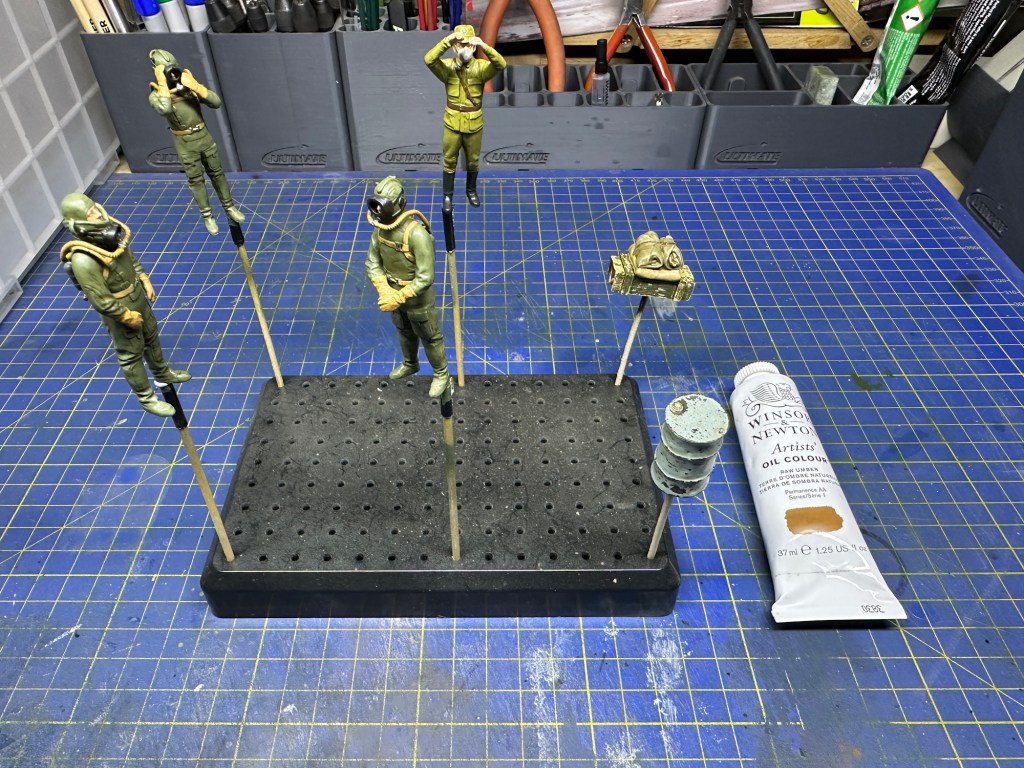 Another ICM figure set – their divers. As with the refugees set, I used the background cardboard image provided – attaching it to a wooden board and adding a few incidental bits.