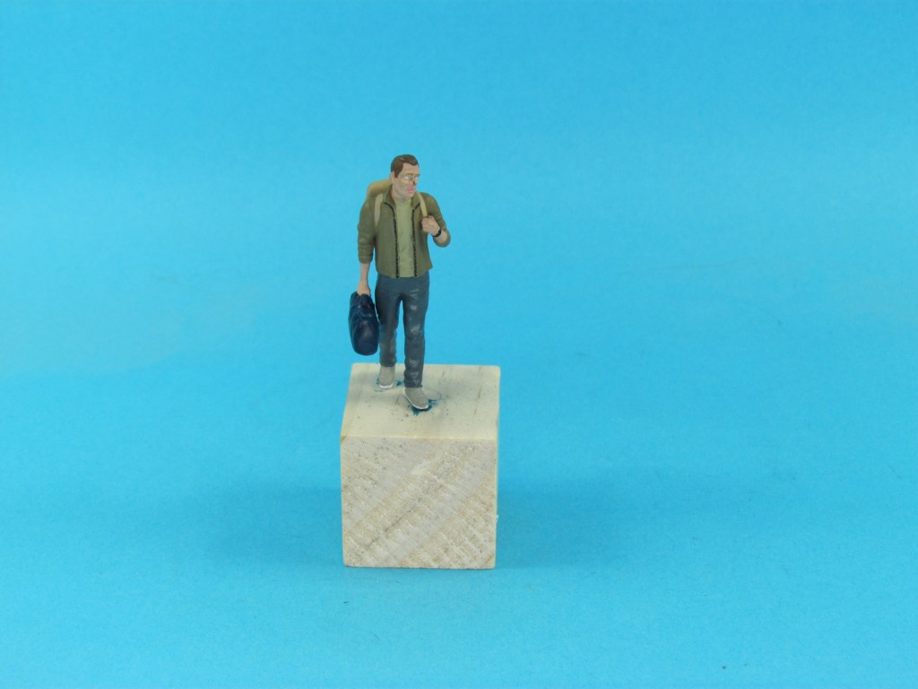 I should document my further attempts at the ICM “Chernobyl” figure series. Now, as stated before, figures are not really my thing – the eyes look a bit zombie like but from a reasonable distance I don’t think it matters. I used the background card which comes with it – the building – and attached it to the porch to create a sort of “semi-diorama”. I added the pigeons as an extra.