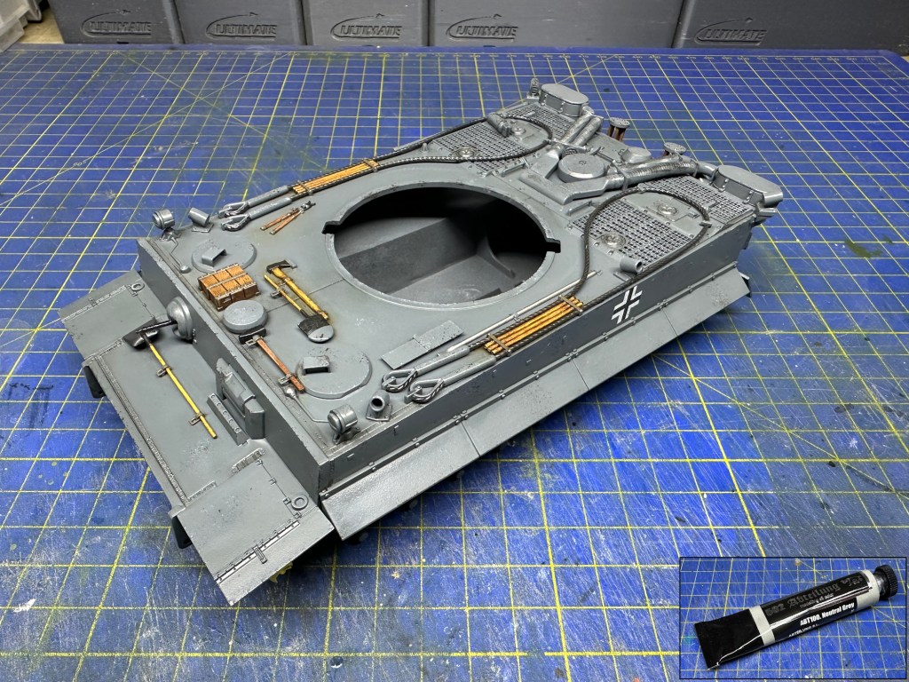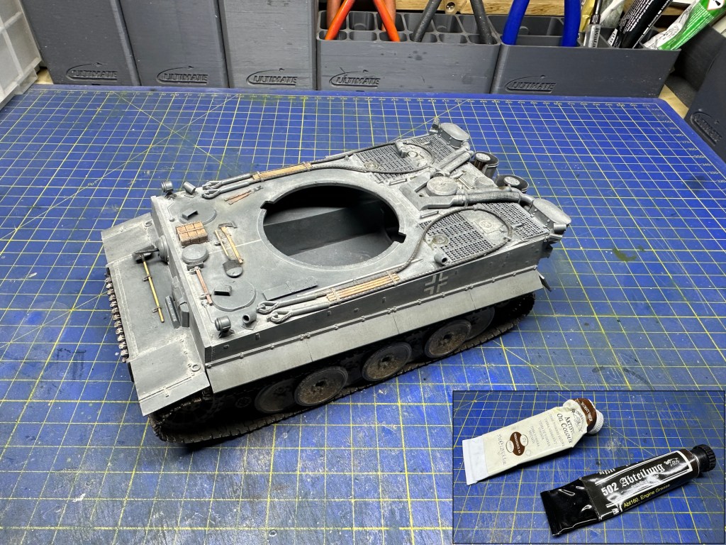 - Abteilung 502 “Engine Grease” (Abt160) oil paint, in varying dilutions in enamel thinners, was added to parts of the vehicle, to simulate oil and fuel stains.