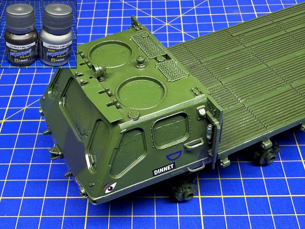- Very few paint chips – more scratches – in certain places were simulated using AMMO “Light Metal” paint (A.MIG-0602), applied with a sponge.