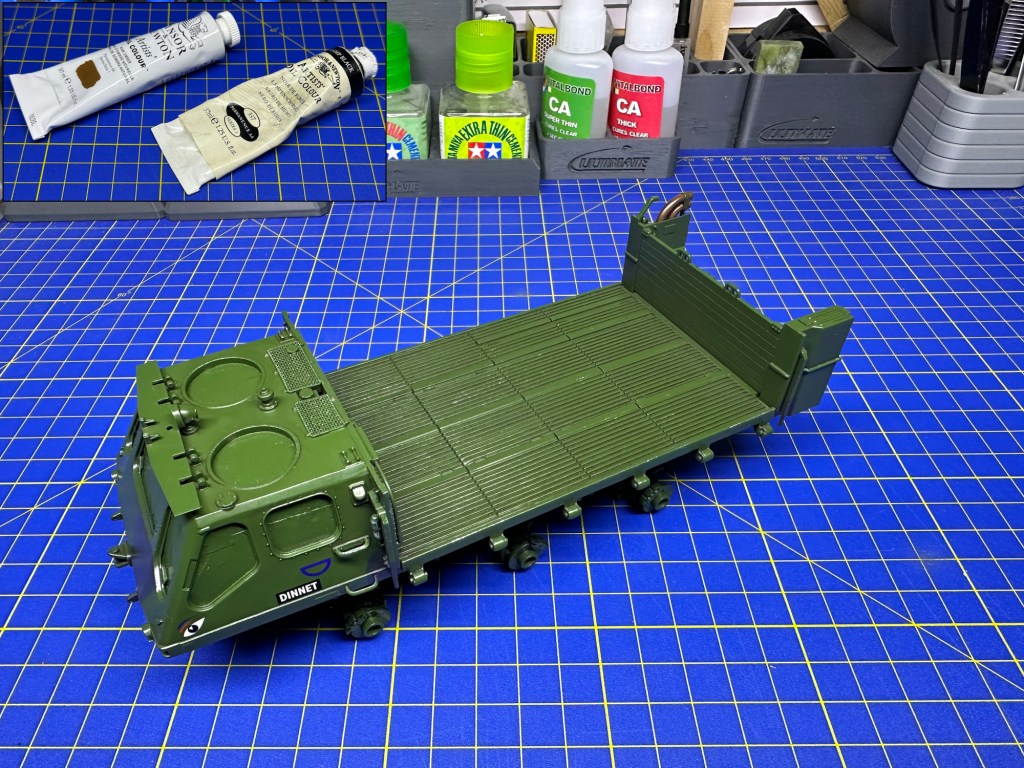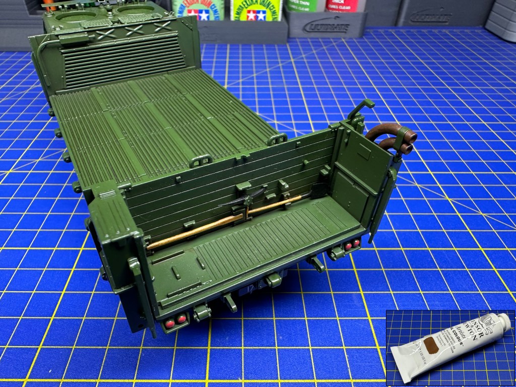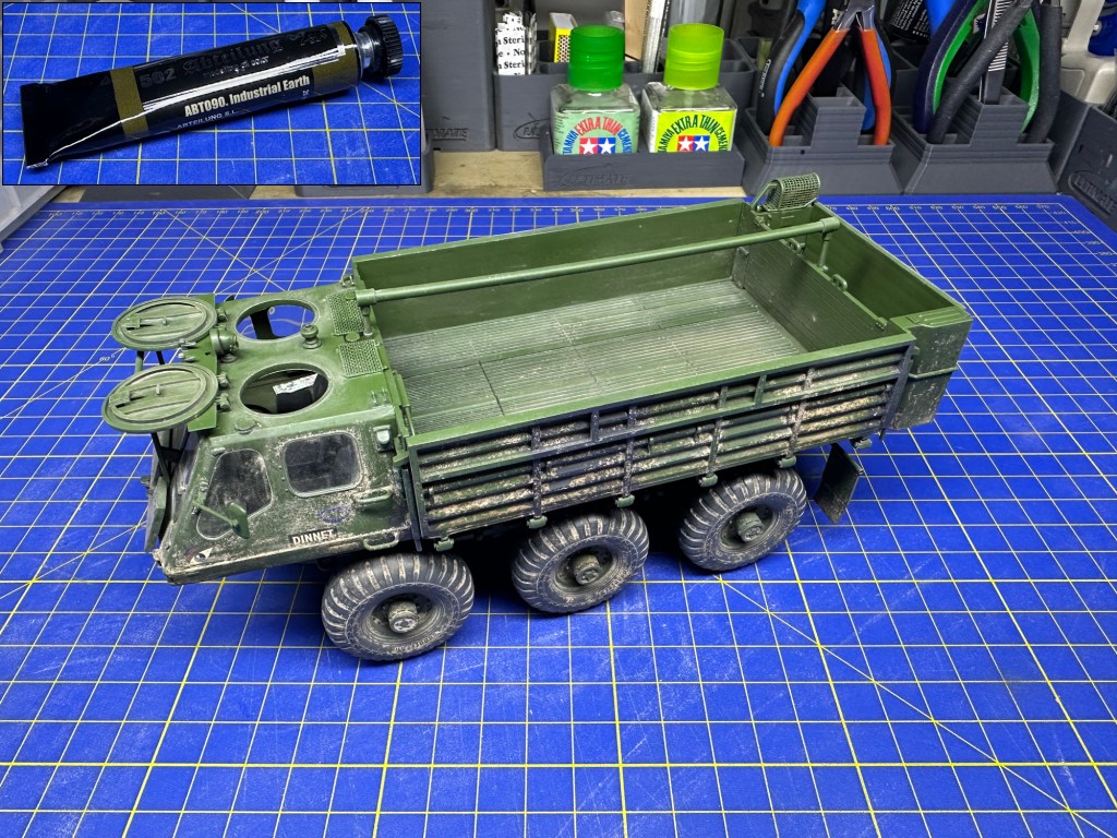 - Abteilung 502 “Industrial Earth” (Abt090) oil, diluted with enamel thinners, was added by brush to various parts, to simulate darker patches.