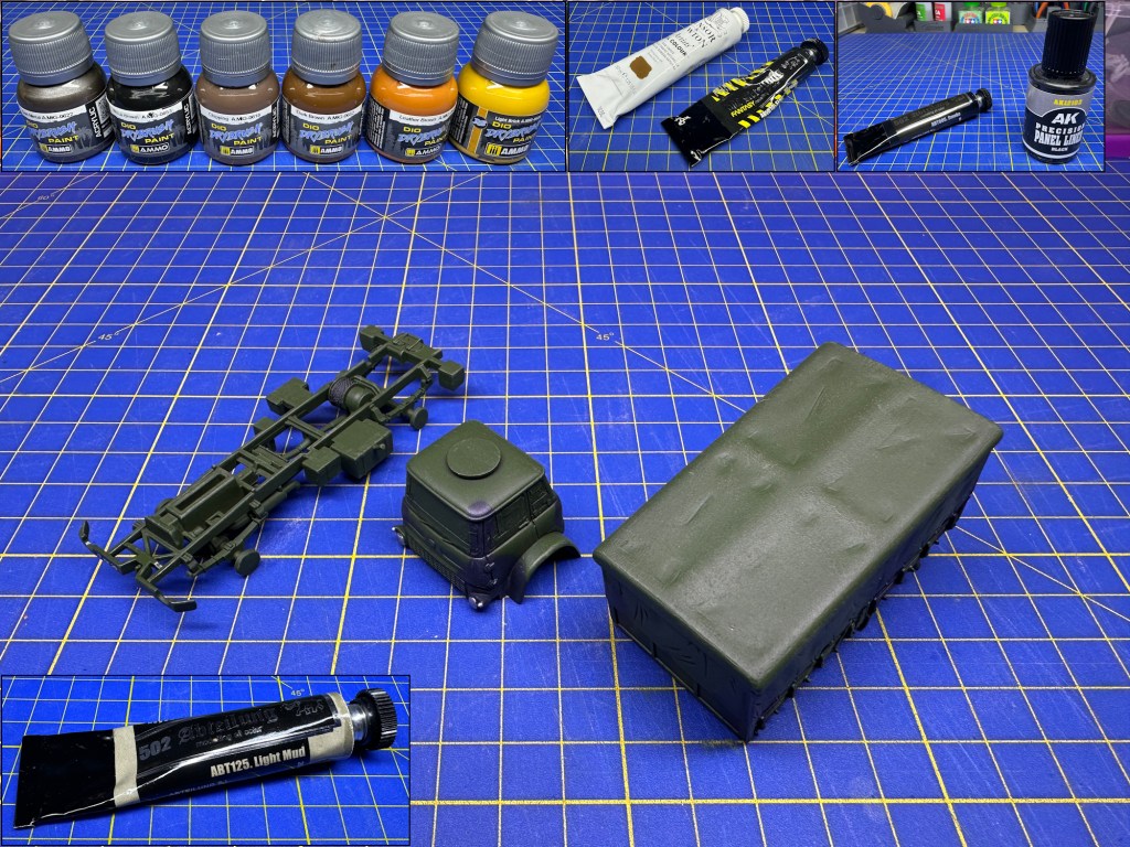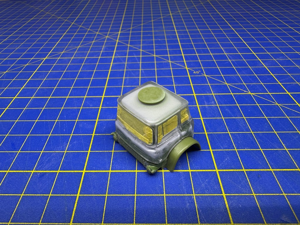 Firstly I painted and weathered the interior – using the paints shown in the images above. Then the windows were masked.
